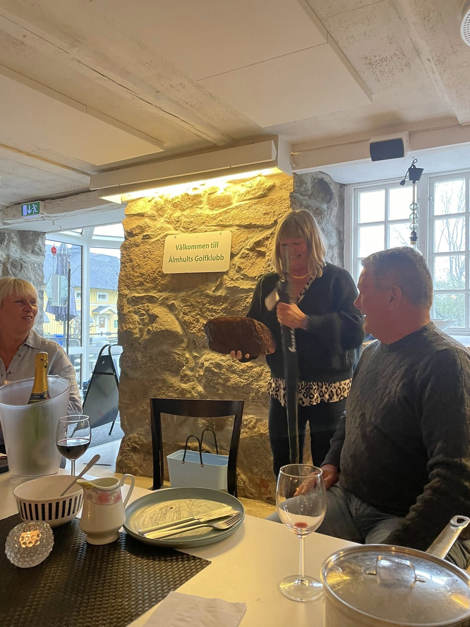 och efter 9 hål var det fika. Christin och Sussie fixade frallor och kaffe till hungriga deltagare. Klockan 18.00 samlades vi för gemensam måltid med prisutdelning.Vinnare och ny mästarinna blev Annika Ceder på 71 slag. På andra plats Fredrik Sysimetsä på 73 slag. Tredje pris till Torgny Ceder 76 slag.