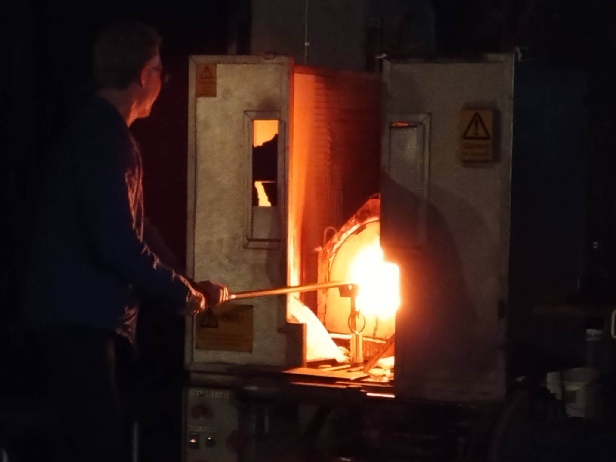 Därefter uppvisning av avancerad glasblåsning av en glasmästare.