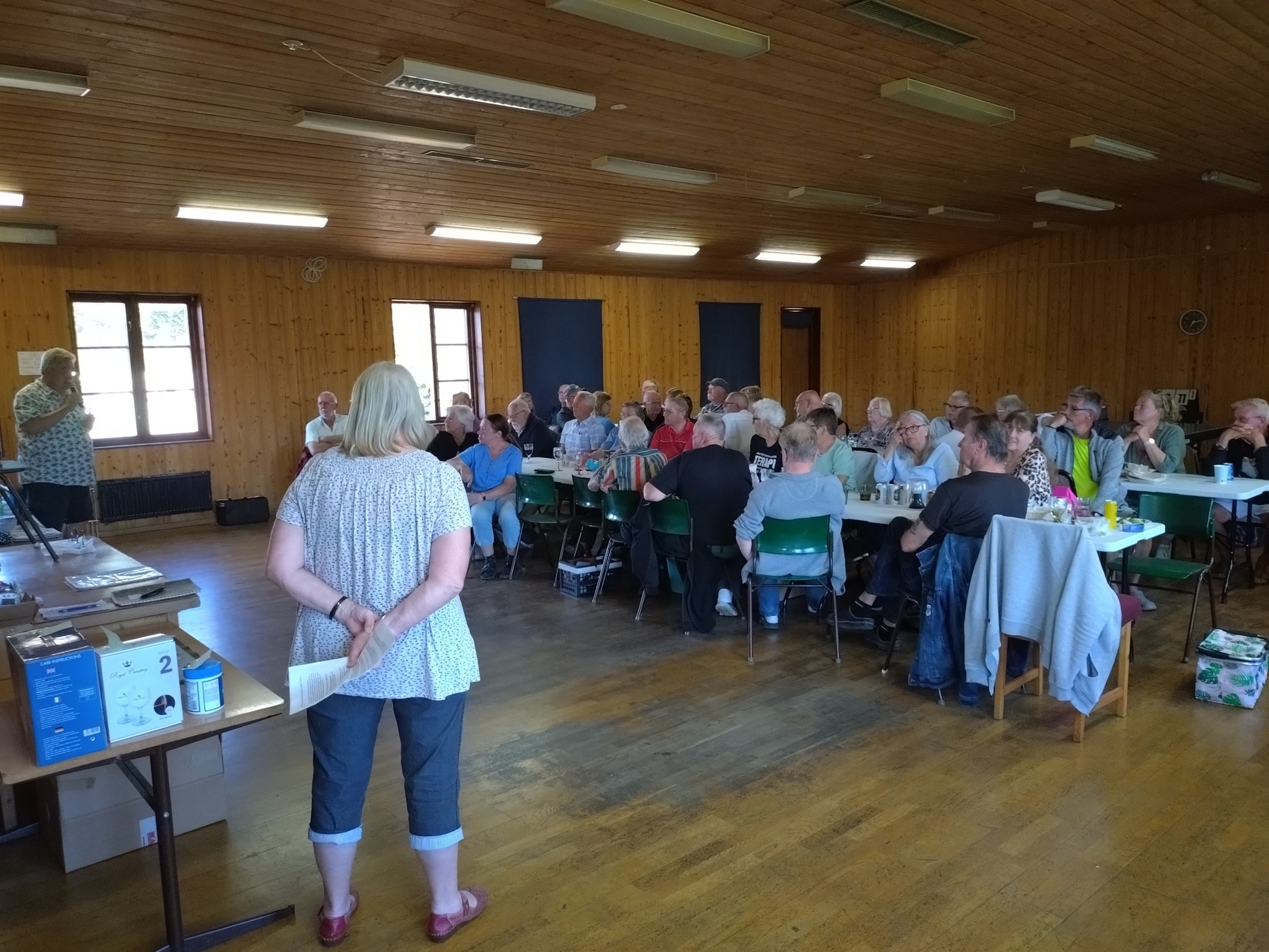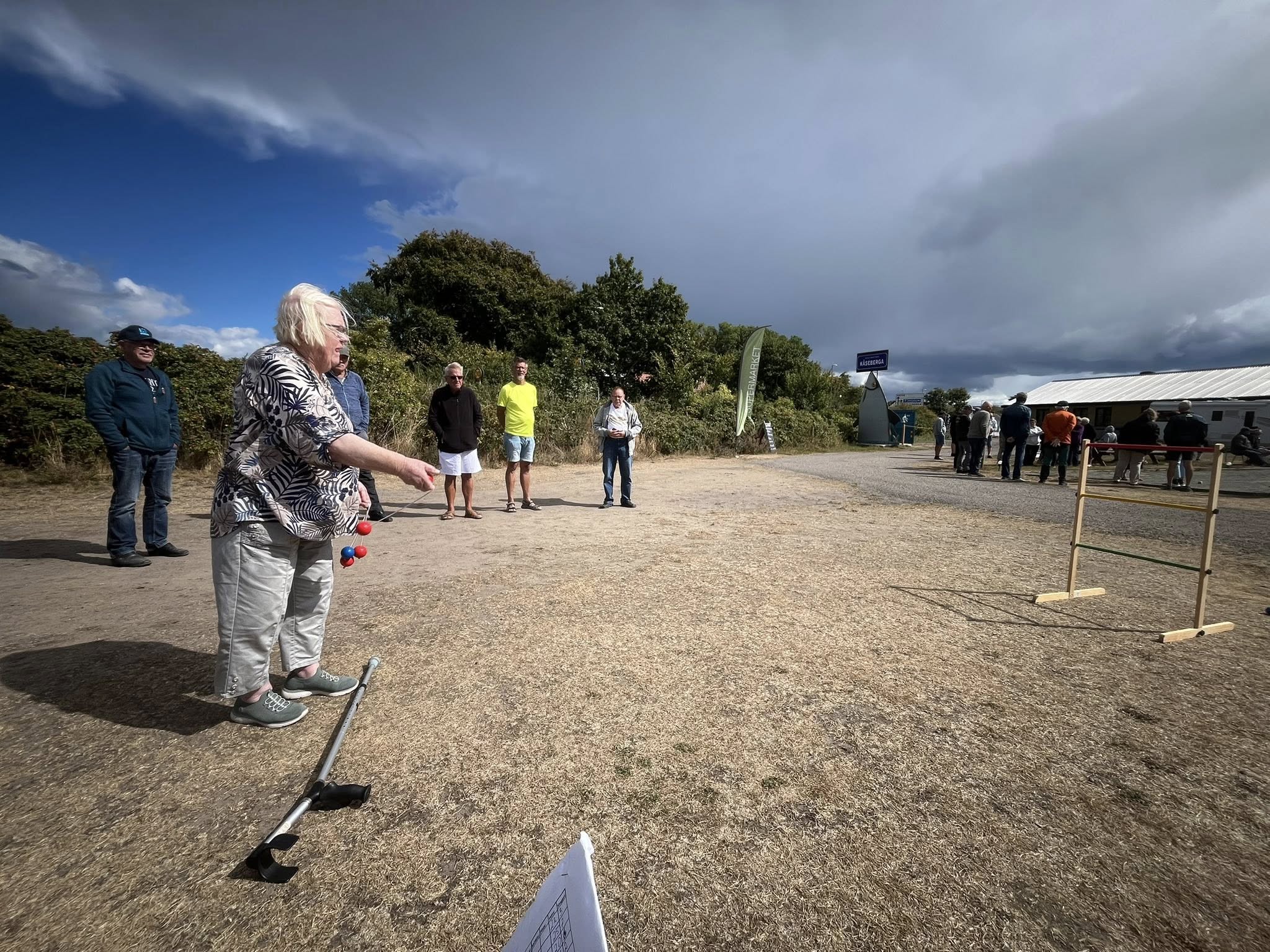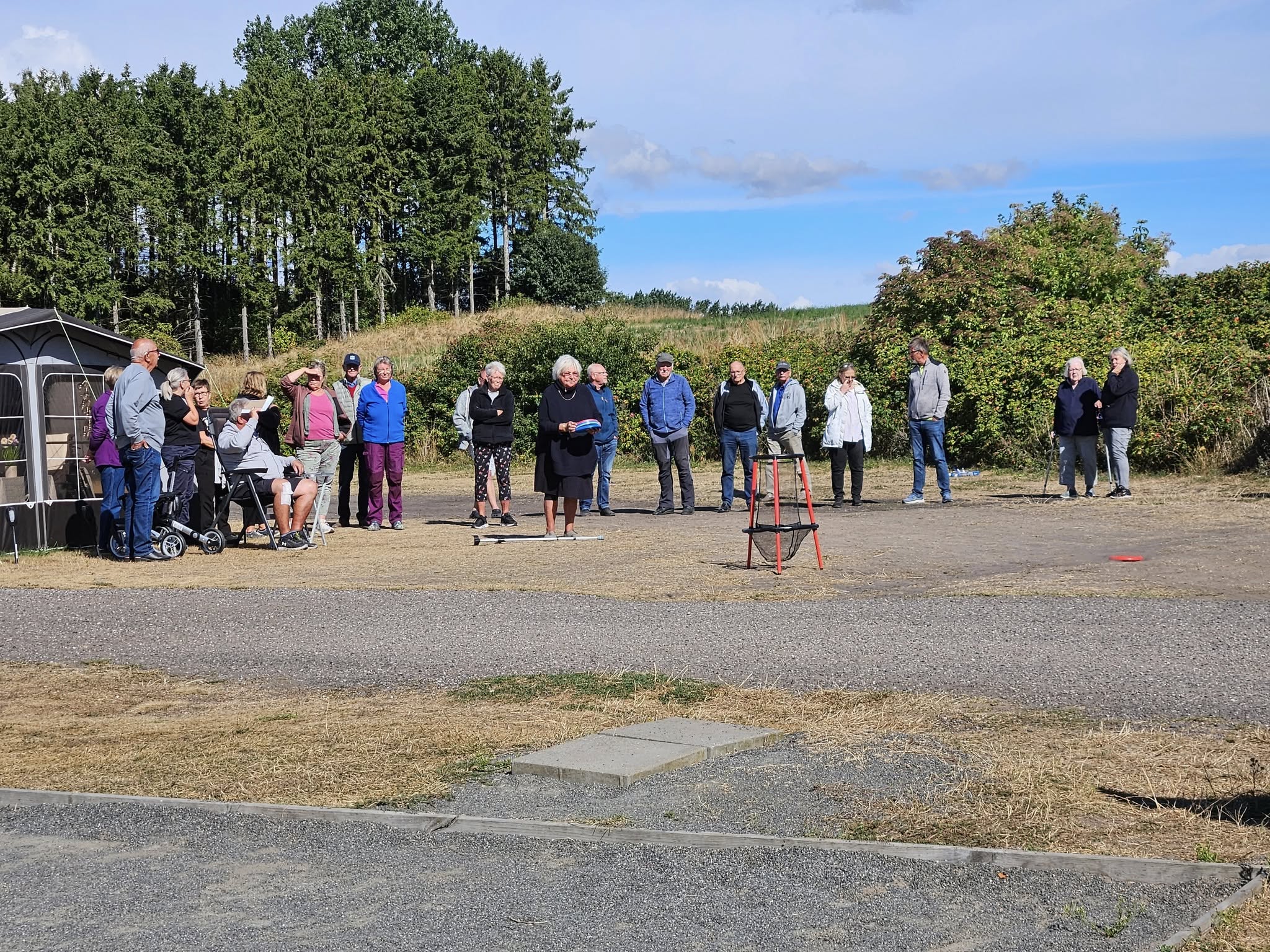 Lördag kl. 10.00 stod 42 förväntasfulla medlemmar samlade och fördelningen till fyra grupper gjordes. Förmiddagens fyra kamper bestod i rulla bouleklot, freesbee golf, Dropin Hood och pilkastning.
