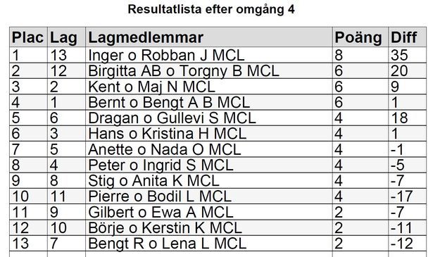 Från vänster: 2:a Birgitta/Torgny - 1:a Robban/Inger - 3:e Kent/Maj och längst ut till höger står tröstpristagarna. Bengt o Lena