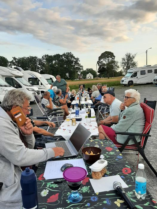 I år hade vi vädret med oss och vi kunde duka upp till kvällens sittning på grusplanen. Dock gällde mygg spray.