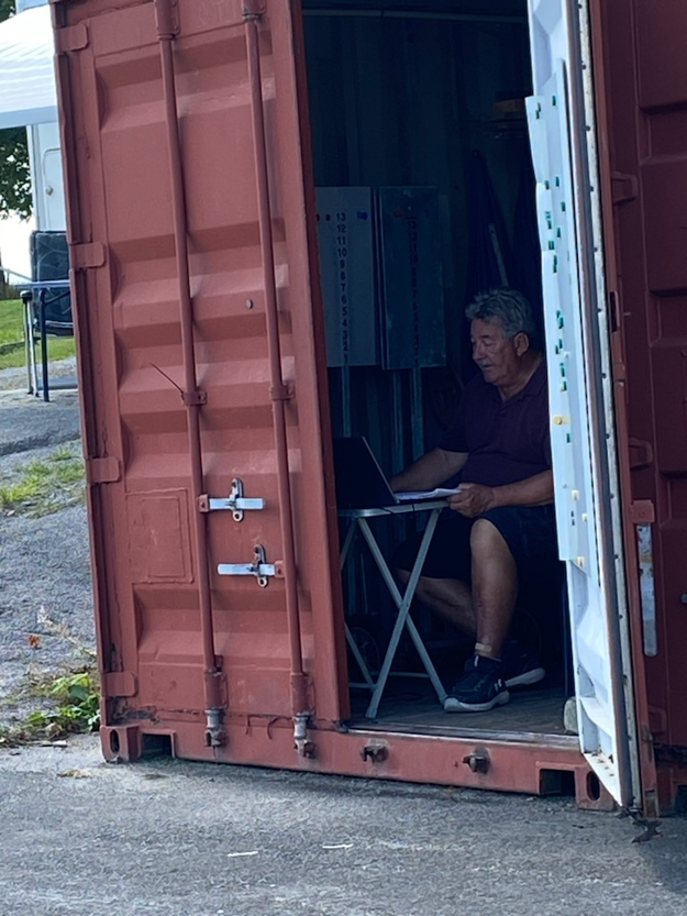 15,30 var vi färdiga och nu sitter Bernt i den stekheta containern och skriver in de sista resultaten.