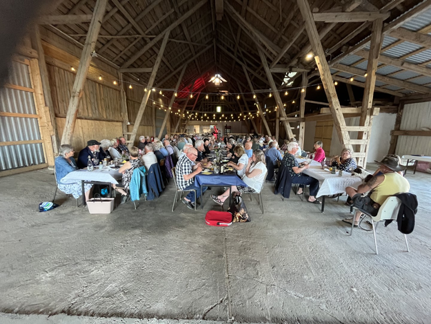 Till kvällen bjöd klubben på nygrillade karrékotletter med tillbehör. Ladan var uppdukad för några timmars samvaro.